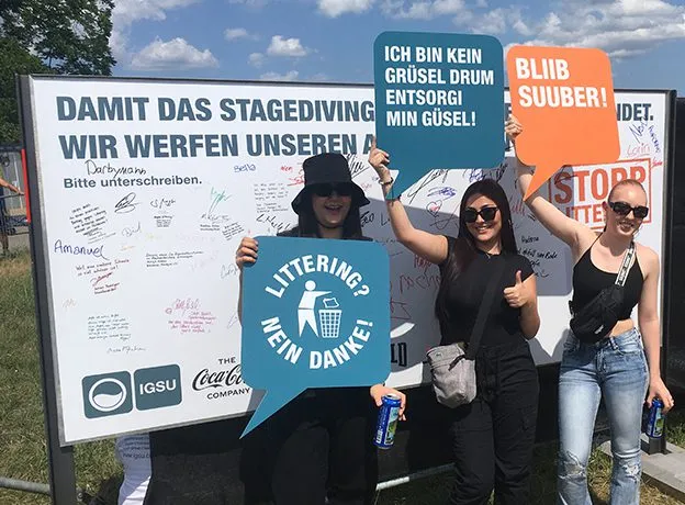 Am Openair Frauenfeld zeigten die IGSU, das Schweizer Kompetenzzentrum gegen Littering, und Getränkeherstellerin Coca-Cola, wie man’s richtig macht: Abfall in den Kübel, Wertstoffe in die Sammelbehälter.