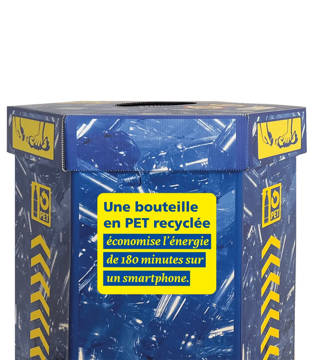 …de continuer à déposer les bouteilles à boissons en PET dans la collecte des bouteiles à boissons en PET et non dans le sac de collecte de RecyPac.
