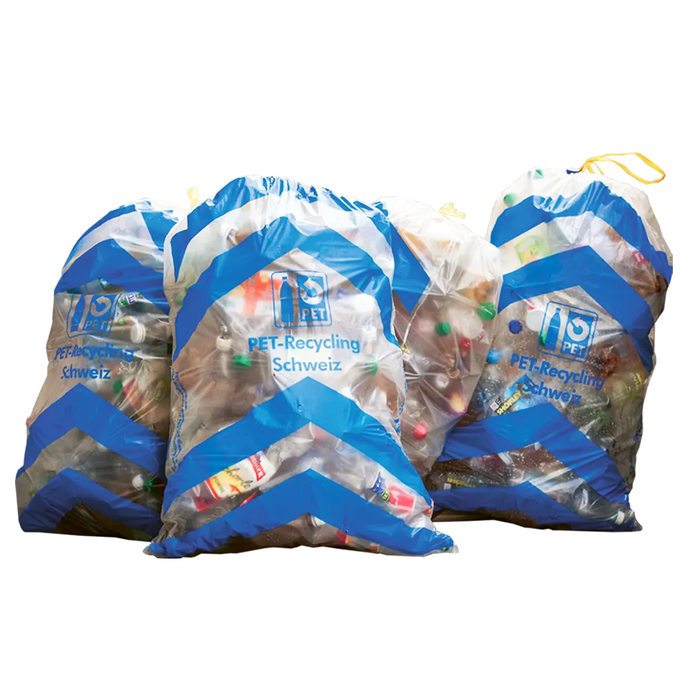 Le sac de collecte de RecyPac est un complément utile aux collectes existantes de bouteilles à boissons en PET et de bouteilles en plastique. À l’avenir, une offre de collecte sera proposée pour TOUS les emballages plastiques – donc aussi pour les barquettes de salades, briques à boissons, emballages de viande, films de six-packs, etc. PET-Recycling Schweiz espère que cette offre incitera à collecter les emballages plastiques dans des sacs de collecte de RecyPac au lieu de les jeter par erreur dans la collecte des bouteilles à boissons en PET. Un tri correct est extrêmement important, car les emballages plastiques et les bouteilles à boissons en PET sont recyclés dans des installations différentes. Pour des raisons d’hygiène, les bouteilles à boissons en PET ne doivent pas être mélangées à d’autres emballages. C’est la seule façon de transformer les bouteilles à boissons en PET en nouvelles bouteilles de qualité alimentaire.
