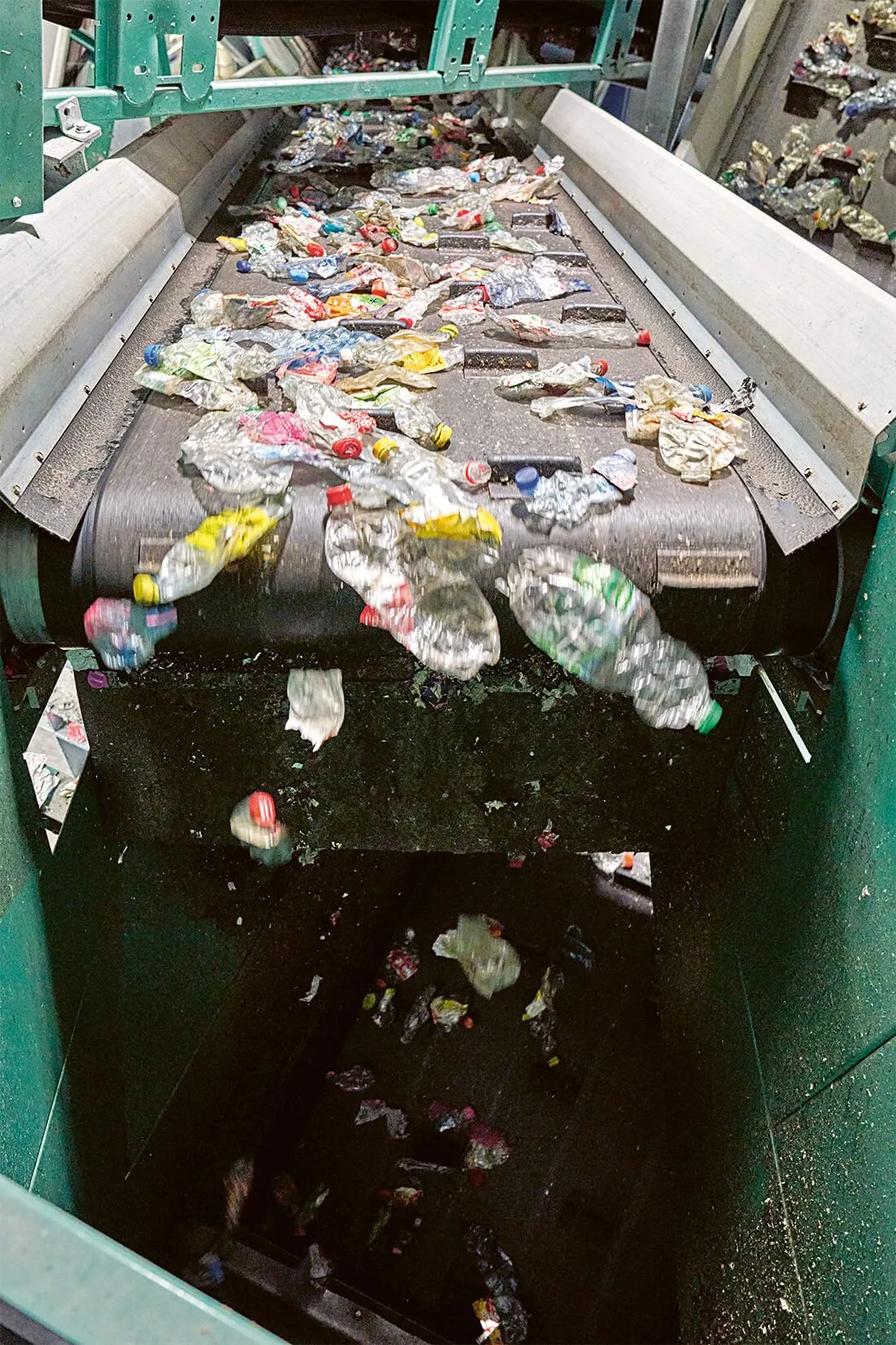 Dans le processus de valorisation chez RecyPET (voir schéma), les bouteilles à boissons en PET livrées et triées par couleur sont de nouveau triées afin d’éliminer les dernières matières étrangères. Puis les bouteilles à boissons en PET sont lavées et broyées, les bouchons et les étiquettes sont retirés. Les paillettes de PET sont ensuite transformées en paillettes de PET de qualité alimentaire ou en granulat de PET de qualité alimentaire sur la nouvelle extrudeuse. Contrairement au granulat de PET, les paillettes de PET doivent être décontaminées chimiquement pour être de qualité alimentaire, nécessitant en plus un lavage et un séchage.